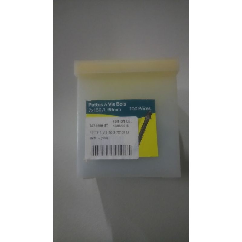 Marque : Eurobasic. Boite de 100 pattes à vis Bois de longueur 60mm. Visserie 7x150.