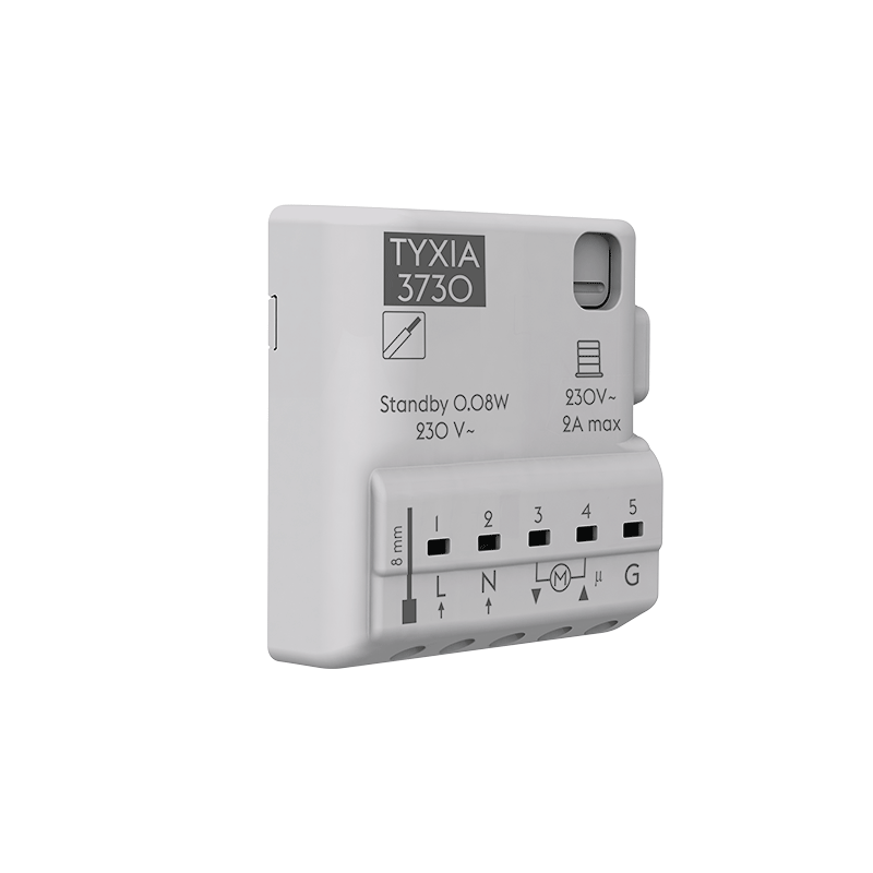 Commande un volet roulant à partir d’un interrupteur maintenu Montée/Stop/Descente ou Montée/Descente en commande locale. Permet de conserver son ancien bouton de volets roulants tout en proposant une solution de centralisation grâce au module TYXIA 3CNT.
