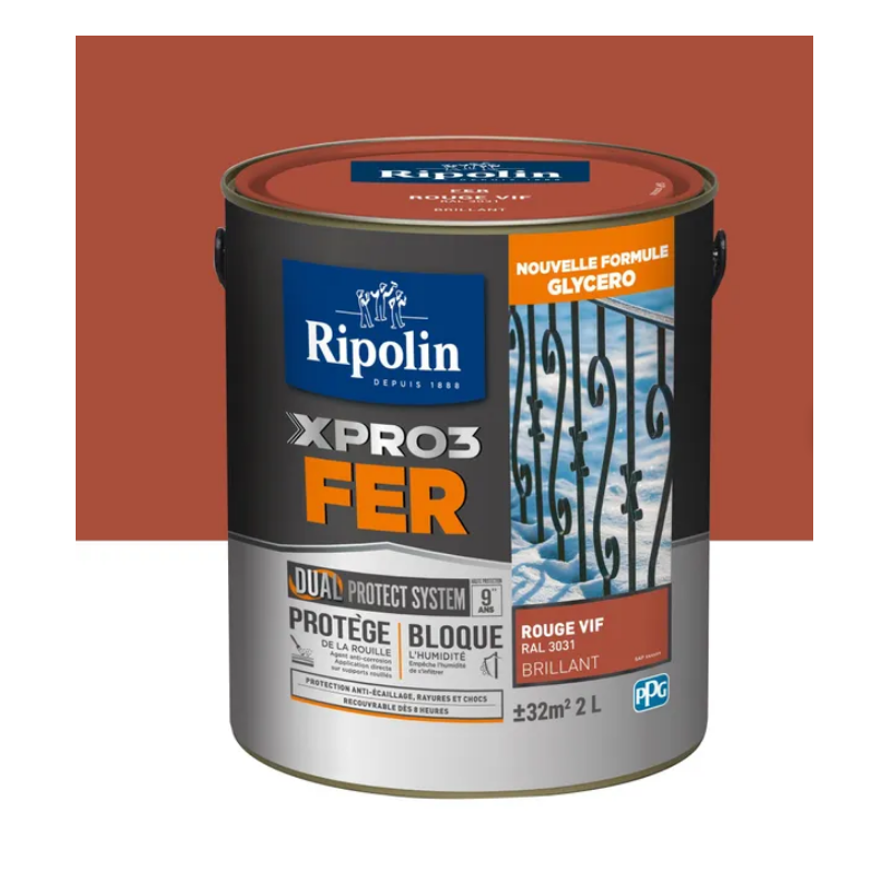 > Peinture extérieure fer Xpro3 RIPOLIN rouge vif brillant 2l
