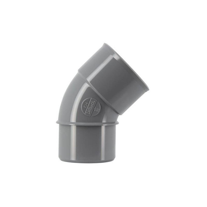 Le coude de 45° est un raccord pour tube d'évacuation des eaux usées ou eaux vannes à l'intérieur d'un bâtiment. Il s'assemble par collage.
