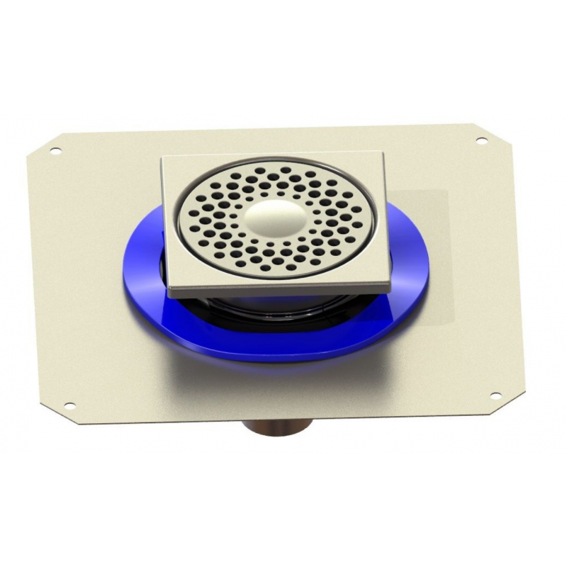 Siphinox Limatec en acier inox EN 1.4301 150 x150 mm avec prise de terre, télescopique, sortie verticale diamètre 50 mm. Ecoulement 0.65 l/s env., garde d'eau 50 mm. Platine de positionnement et d'étanchéité 325 x 325 mm. Rosette libre avec bombage central drainant et design à trois diamètres d'orifices 5 - 7 - 8 mm résistant à une charge répartie de 3.3 kN. Cloche désolidarisée.