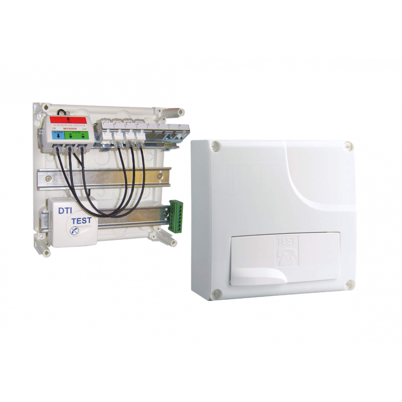 Tableau de communication Grade 1 équipé d'un DTI, d'un filtre maître ADSL et de 4 connecteurs RJ45